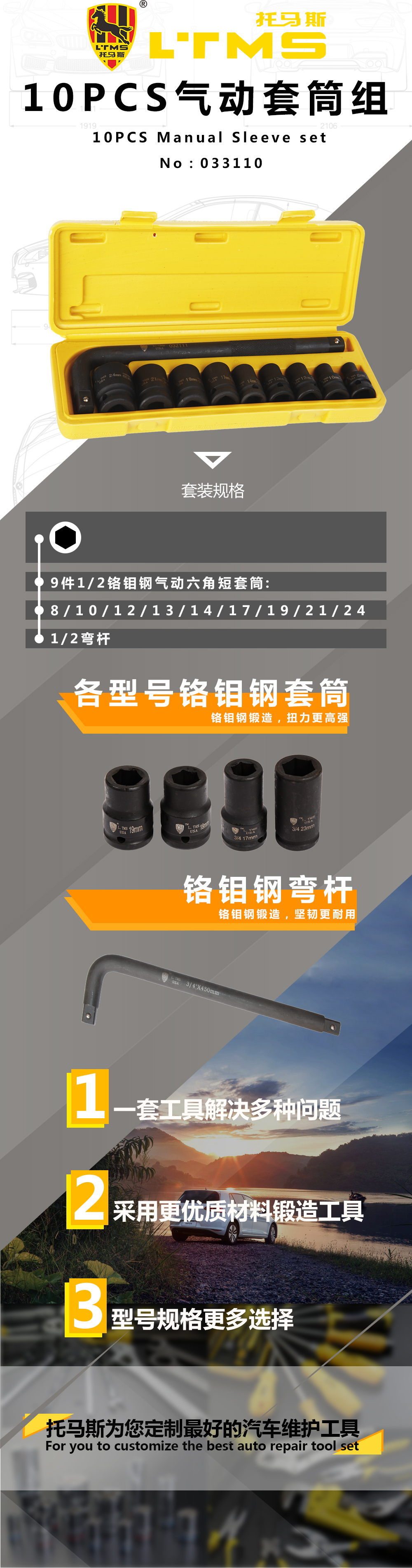 10PCS 气动套筒组