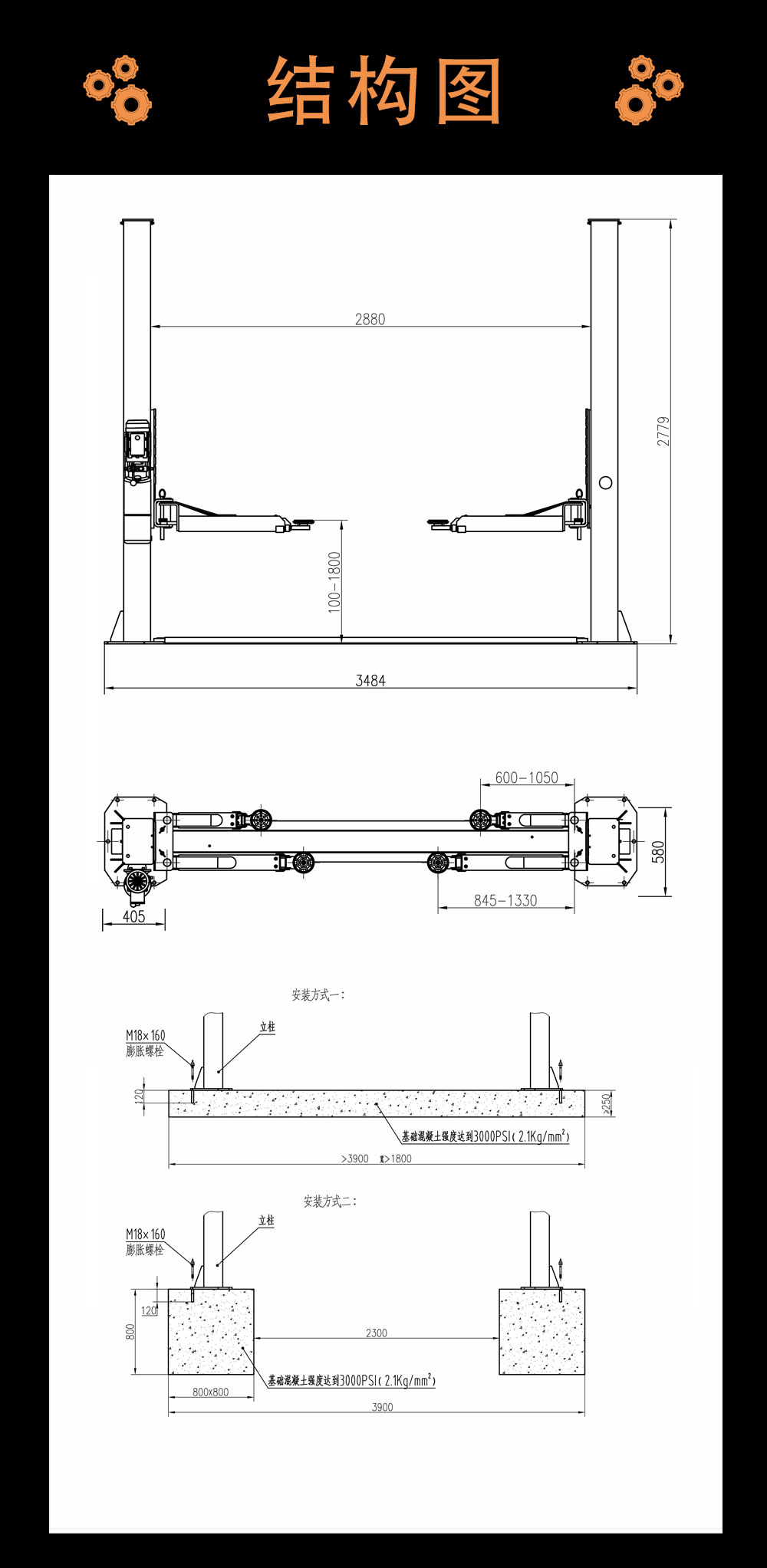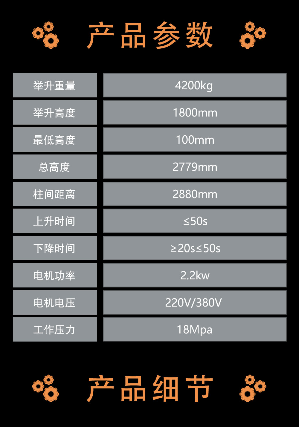4.2吨双边解锁双柱举升机
